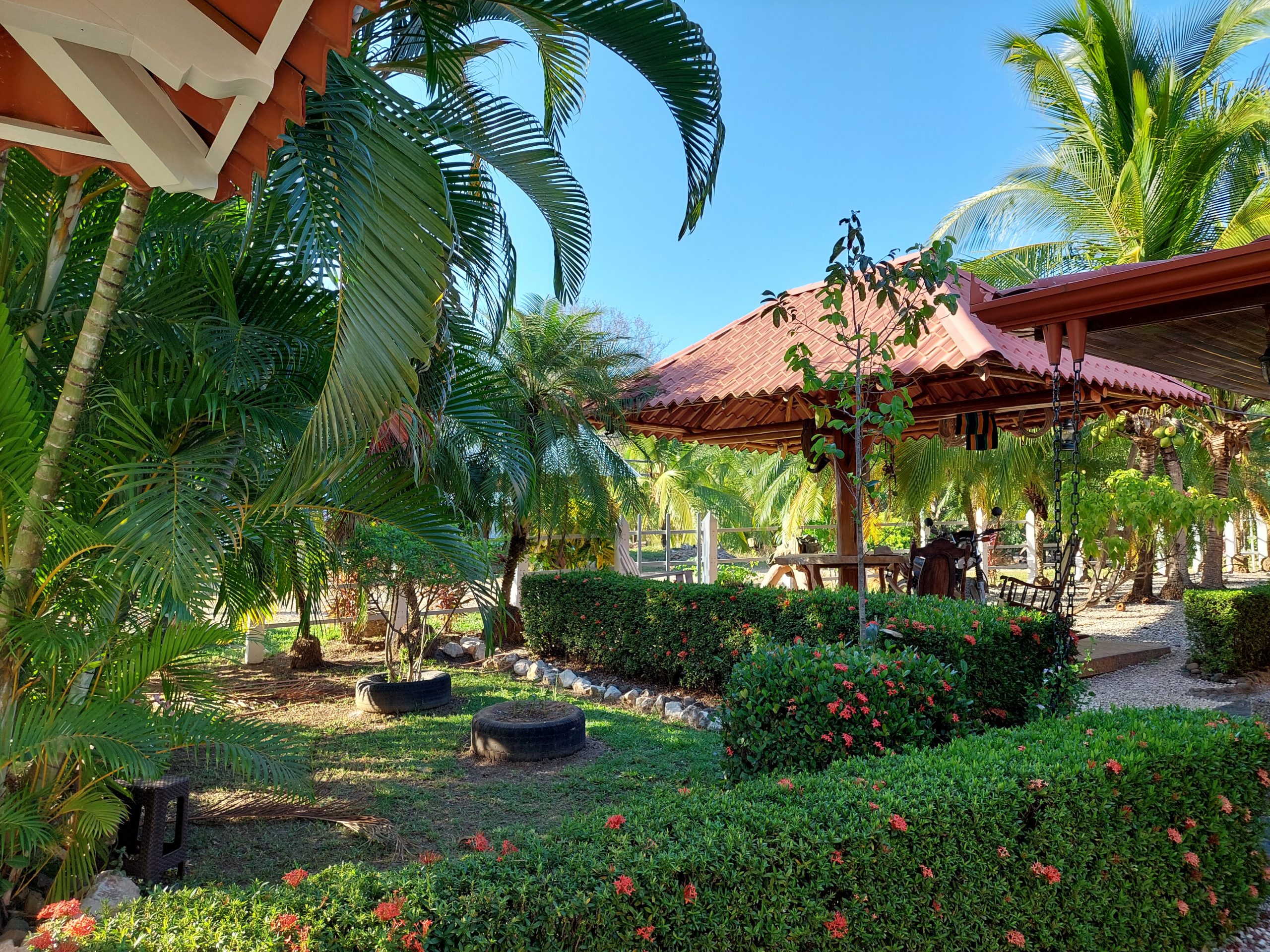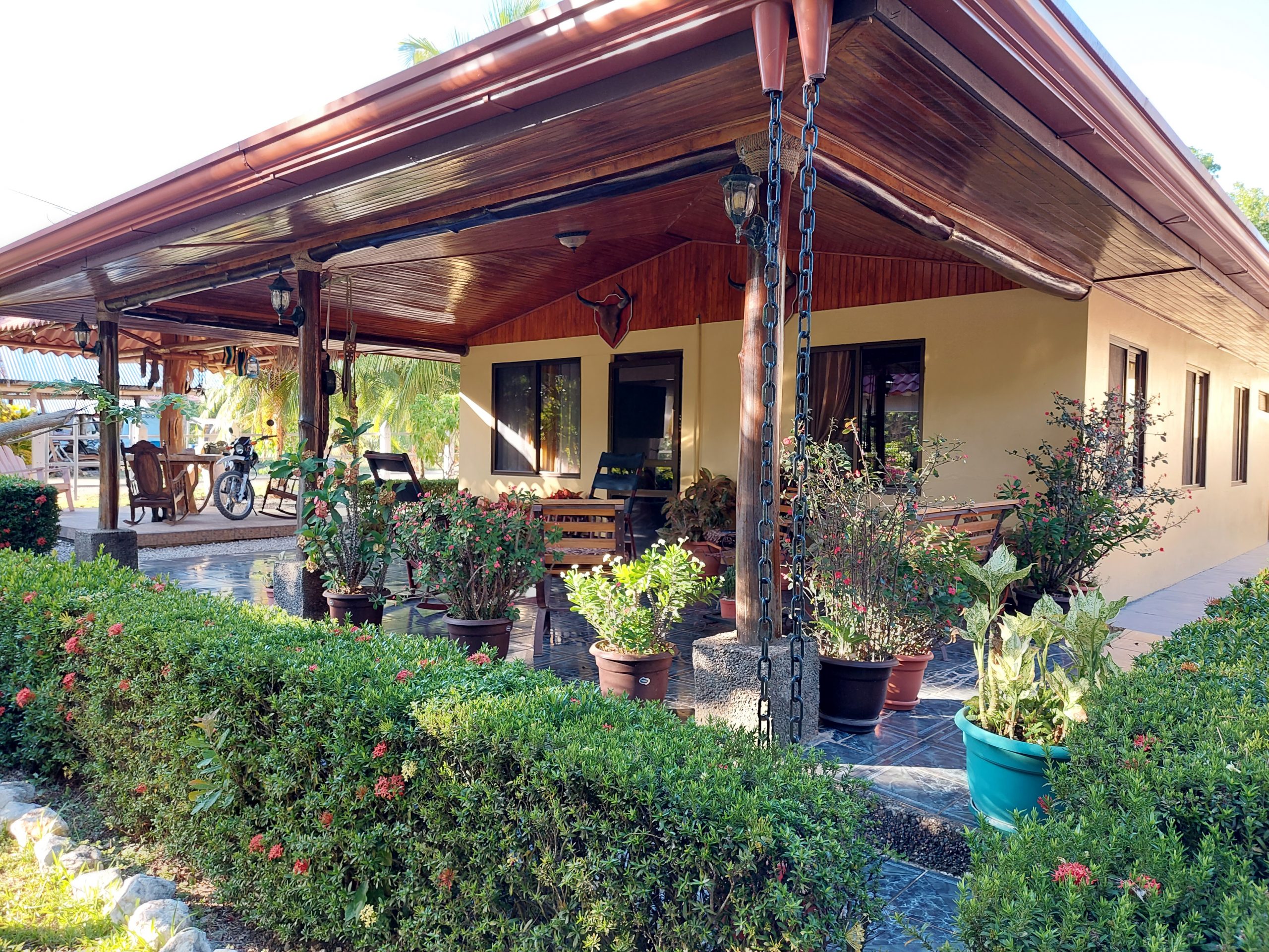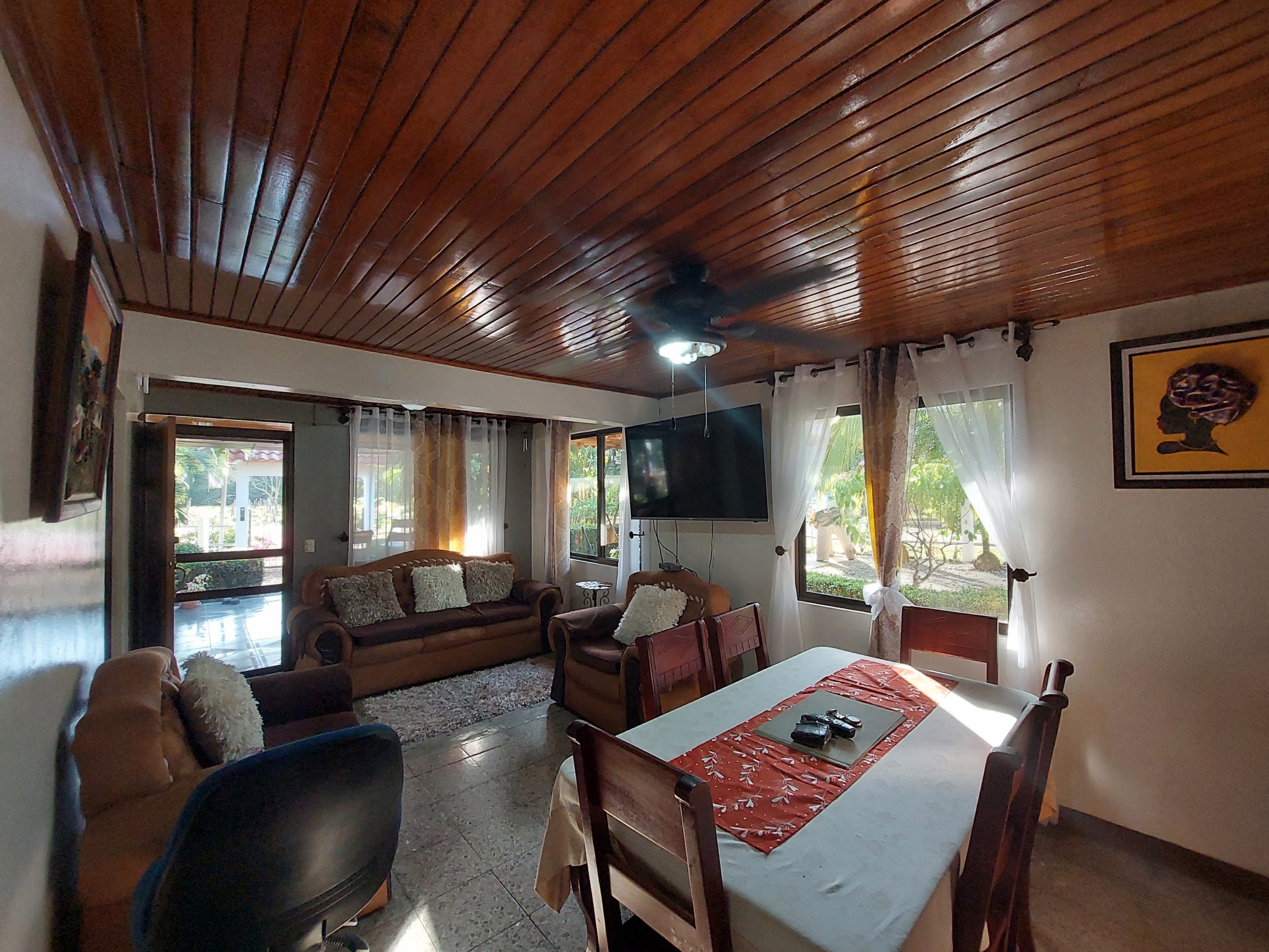 This cozy home has 3-bdrm and 1-bth and was built with concrete block and exotic natural Costa Rican wood adding character to the home. The outdoor space offers a cozy patio area and bodega ideal for BBQing and relaxing. There is also a 1-car garage with space for storage and a carport.