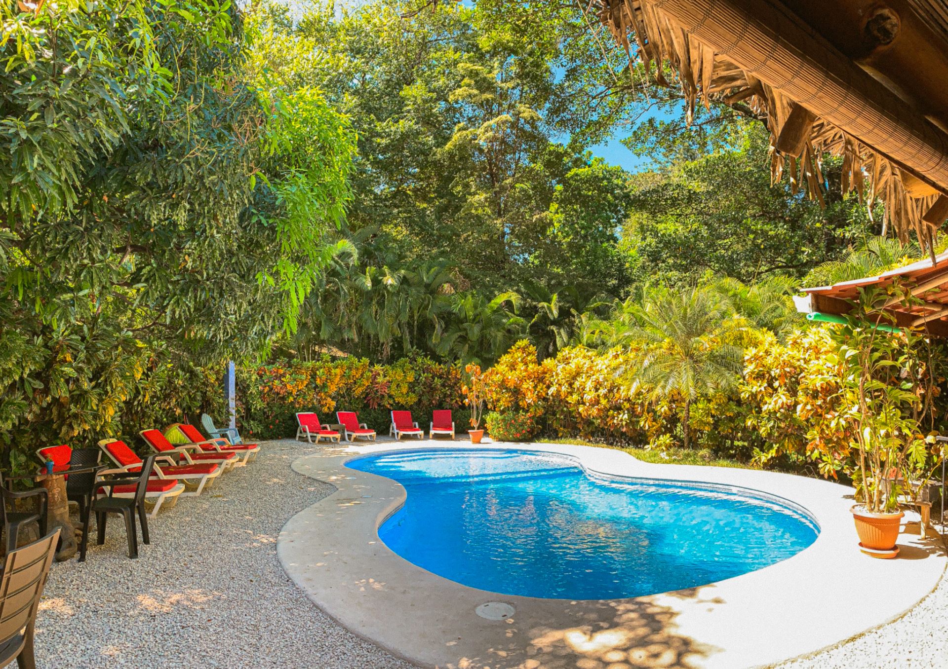 A fantastic opportunity to own a private piece of the jungle! Located just above Playa Samara, this property has three boutique homes and three studio apartments with private terraces. Each home has great open air living spaces, lush gardens and privacy. There is also a clubhouse with kitchen that surrounds the pool and plenty of open space where more construction is possible. The two bedroom home is just far away from it all and offers a private jungle setting with pool. This property is located on a quiet street surrounded by jungle yet within walking distance to three beaches and even downtown Samara.